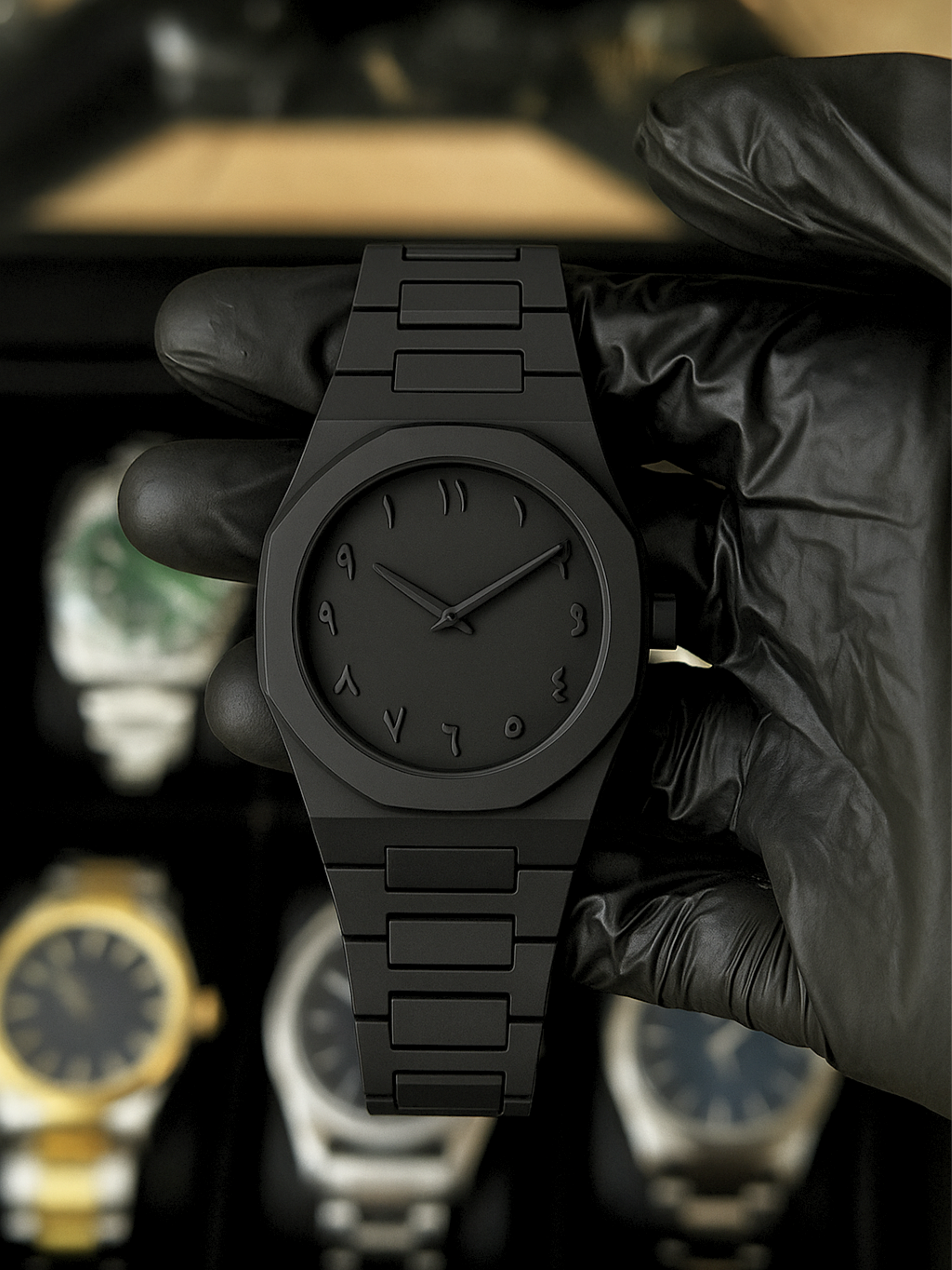 Sleek, bold, and effortlessly modern—the Arabic Aura Black is designed for those who appreciate minimalism with a powerful edge. This black luxury wristwatch for men features a clean, monochromatic design that pairs perfectly with both casual and formal outfits. The deep black dial and matching strap create a seamless look, while the lightweight build ensures all-day comfort.